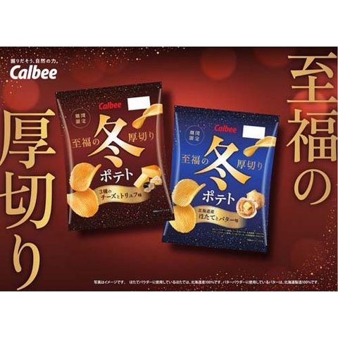 ●厚切りのポテトチップスに、コクのあるバターの味わいと北海道産ほたての旨みをきかせ、至福の味わいに仕上げました。