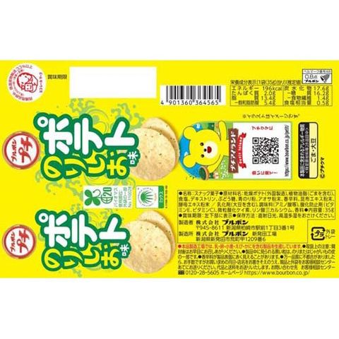 | 乾燥ポテト(外国製造)、植物油脂(ごまを含む)、食塩、デキストリン、ぶどう糖、青のり粉、アオサ粉末、香辛料、昆布エキス粉末、酵母エキス粉末/乳化剤(大豆を含む)、調味料(アミノ酸等)、酸化防止剤(ビタミンE、ビタミンC)、微粒酸化ケイ素、リン酸三カルシウム、香料 |