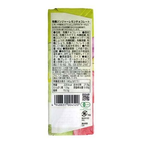 【Artisan 有機ジンジャーレモンチョコの商品詳細】