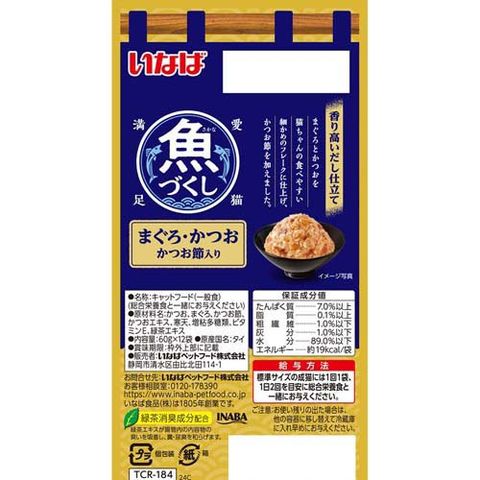 | かつお、まぐろ、かつお節、かつおエキス、寒天、増粘多糖類、ビタミンE、緑茶エキス |