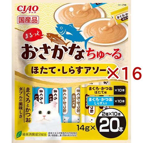 チャオ まるっとおさかなちゅ~る ほたて・しらすアソート (20本入×16セット(1本14g))