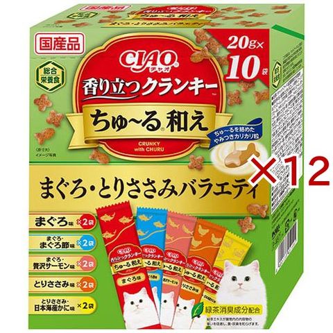チャオ 香り立つクランキーちゅ~る和え まぐろ・とりささみバラエティ (10袋入×12セット(1袋20g))