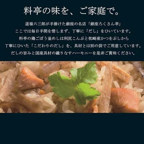 【銀座ろくさん亭 料亭の鶏ごぼう釜めし(2合用)の商品詳細】