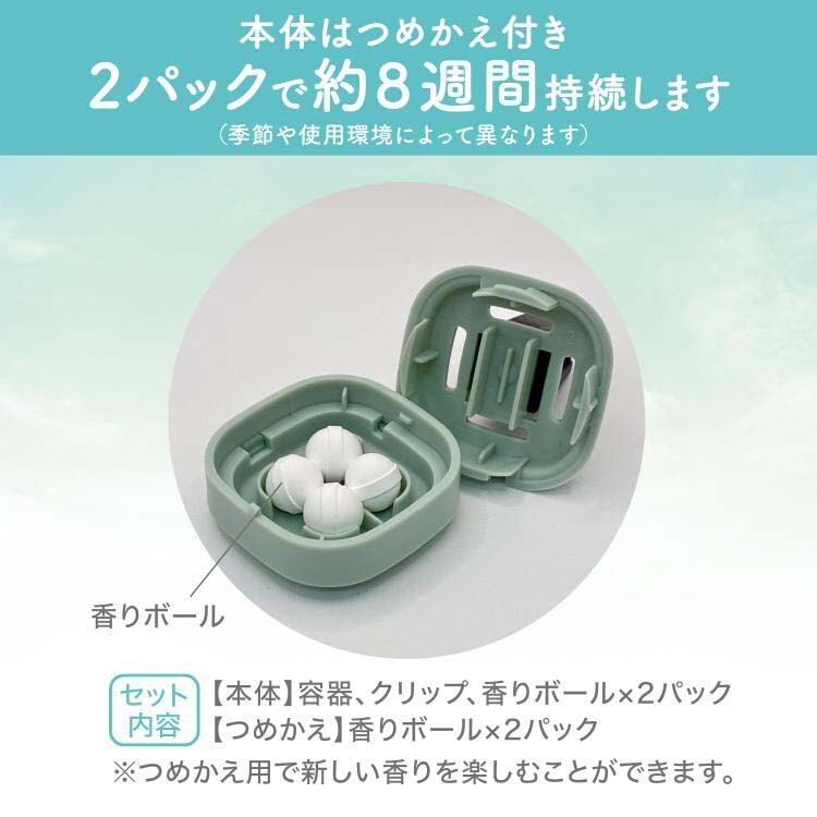 ※使用中や保管の際に香りボールが変色することがありますが、性能上問題ありません。