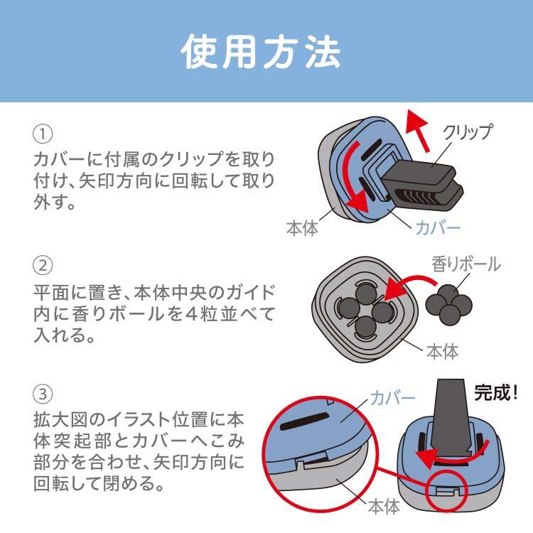 | 容器、クリップ、香りボール4粒×2パック |