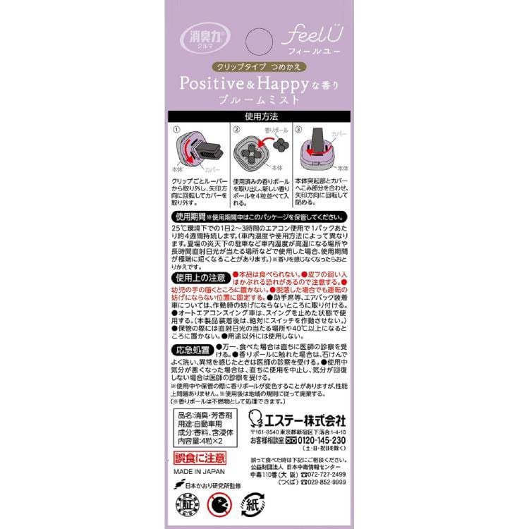 【消臭力 クルマ用 芳香剤 フィールユー クリップタイプ つめかえ ブルームミストの商品詳細】
