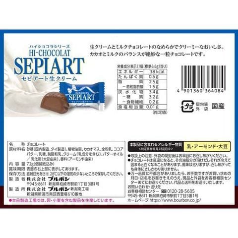 砂糖(国内製造、タイ製造)、植物油脂、カカオマス、全粉乳、ココアバター、乳糖、脱脂粉乳、クリーム(乳成分を含む)、バターオイル/乳化剤(大豆由来)、香料(アーモンド由来)