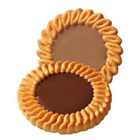 | ★チョコビスケット 1枚(標準4.8g)当り エネルギー:25kcal、たんぱく質:0.4g、脂質:1.2g(飽和脂肪酸:0.7g)、炭水化物:3.1g(糖質:3.0g、食物繊維:0.1g)、食塩相当量:0.04g (推定値) ★コーヒービスケット 1枚(標準4.8g)当り エネルギー:24kcal、たんぱく質:0.3g、脂質:1.1g(飽和脂肪酸:0.7g)、炭水化物:3.2g(糖質:3.1g、食物繊維:0.1g)、食塩相当量:0.04g (推定値) |