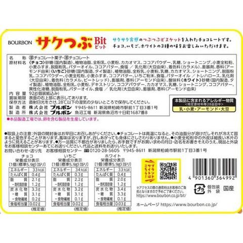 | ★チョコ:砂糖(国内製造)、植物油脂、全粉乳、小麦粉、カカオマス、ココアパウダー、乳糖、ショートニング、小麦全粒粉、小麦ふすま、脱脂粉乳、バターオイル、ココアバター、食塩/乳化剤(大豆由来)、着色料(カラメル)、膨脹剤、香料(アーモンド由来) ★いちご:砂糖(国内製造、タイ製造)、植物油脂、全粉乳、小麦粉、乳糖、カカオマス、ショートニング、脱脂粉乳、ココアパウダー、小麦全粒粉、小麦ふすま、ココアバター、いちご粉末、食塩、バターオイル/トレハロース、乳化剤(大豆由来)、着色料(カラメル、ビートレッド)、膨脹剤、香料(アーモンド由来)、酸味料 ★ホワイト:砂糖(国内製造、タイ製造)、植物油脂、全粉乳、小麦粉、デキストリン、ココアパウダー、カカオマス、乳糖、ショートニング、ココアバター、異性化液糖、脱脂粉乳、バターオイル、食塩/乳化剤(大豆由来)、膨脹剤、香料(アーモンド由来) |