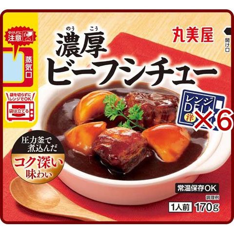 ●圧力釜で煮込んだ濃厚なビーフシチューが、レンジで温めるだけで食べられます。レンジ対応袋入り。