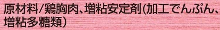 | 鶏胸肉、増粘安定剤(加工でんぷん、増粘多糖類) |