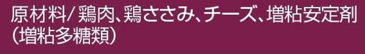 | 鶏肉、鶏ささみ、チーズ、増粘安定剤(増粘多糖類) |