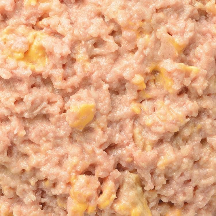 ●鶏肉と鶏ささみにチーズを加え、食べやすいミンチ状に仕上げました。