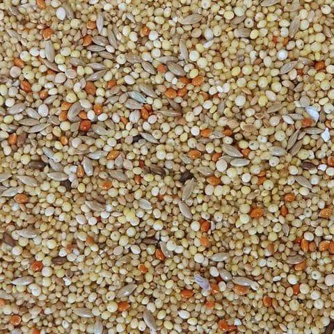 | アワ(皮むき)、ヒエ(皮むき)、キビ(皮むき)、カナリアシード(皮付き)、カナリアシード(皮むき)、赤アワ(皮付き)または赤キビ(皮付き)、ボレー粉(カキガラ)※アワ(皮むき)の一部には、ハチミツ、乳酸菌、オリゴ糖、カルシウムが添加してあります。 |