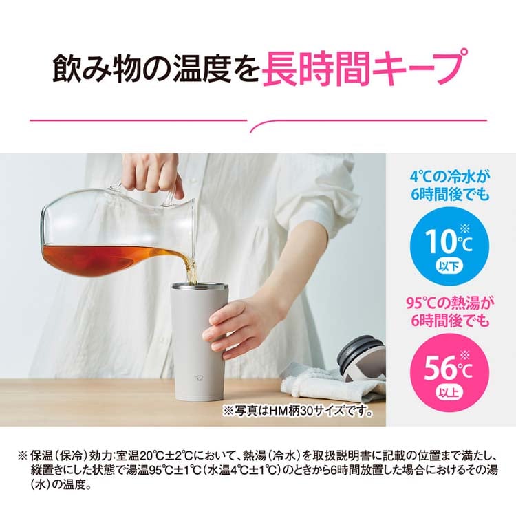 (※2 保温(保冷)効力:室温20度±2度において、熱湯(冷水)を取扱説明書に記載の位置まで満たし、縦置きにした状態で湯温95度±1度(水温4度±1度)のときから6時間放した場合におけるその湯(水)の温度。)