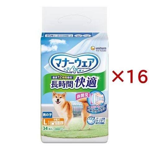 マナーウェア 長時間快適オムツ 男の子用 L 犬用 (34枚入×16セット)