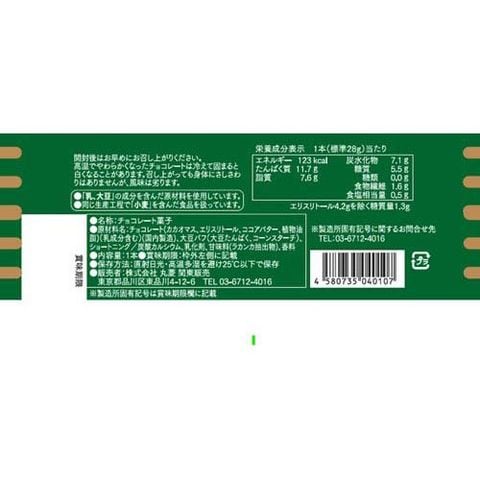 | チョコレート(カカオマス、エリスリトール、ココアバター、植物油脂)(乳成分含む)(国内製造)、大豆パフ(大豆たんぱく、コーンスターチ)、ショートニング/炭酸カルシウム、乳化剤、甘味料(ラカンカ抽出物)、香料 |