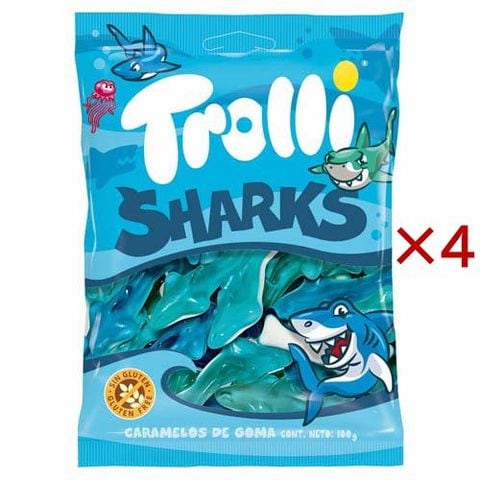 ●サメの形をしたフルーツ&クリームフレーバーのグミキャンディ。