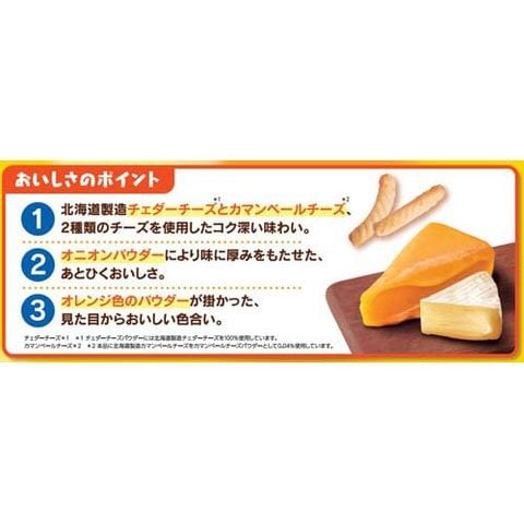 ●北海道製造のチェダーチーズとカマンベールチーズ、2種類のチーズを使用したコク深い味わいです。