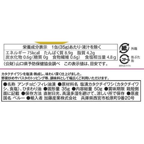 | 塩漬カタクチイワシ(カタクチイワシ、食塩)、ひまわり油 |
