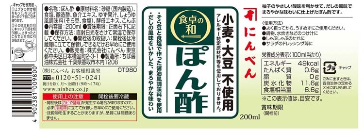 食卓の和 小麦・大豆不使用ぽん酢 (200ml×3セット)