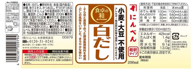 食卓の和 小麦・大豆不使用白だし (200ml×12セット)