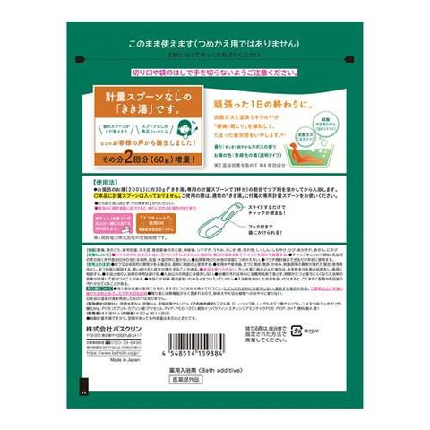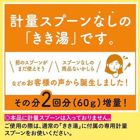 ・本品に計量スプーンは入っておりません。ご使用の際は、通常の「きき湯」に付属の専用計量スプーンをお使いください。