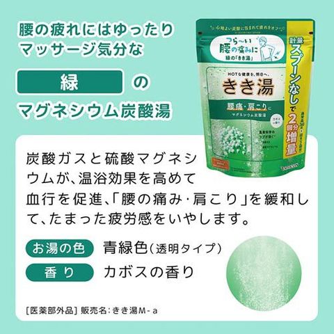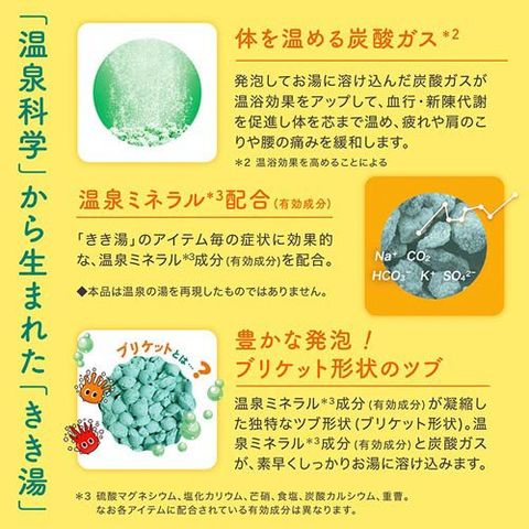 ●HOTな健康を、明日へ。心地よい炭酸に包まれて疲れをオフ※1 つら~い腰の痛みに緑の「きき湯」