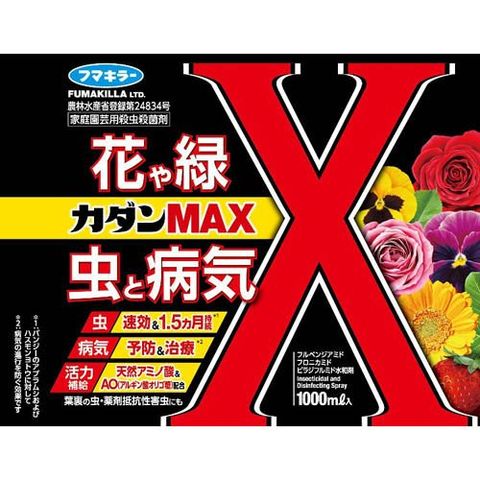 ●また、花や観葉植物、野菜、果樹、庭木など、1本で幅広い作物と病害虫に使えるので、何本も薬剤を買いそろえる必要がありません。