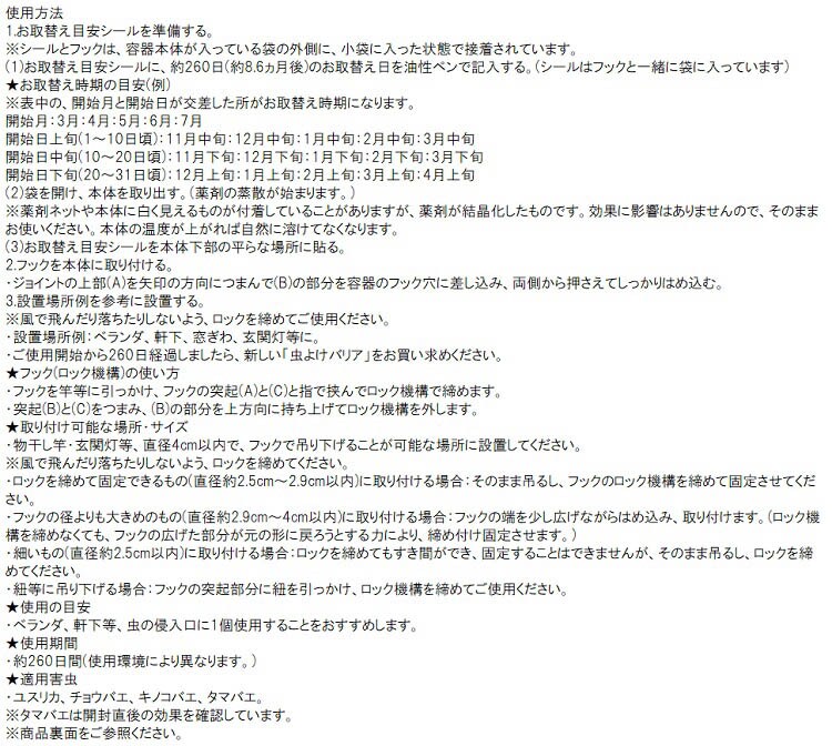 【虫よけバリア 260日用の商品詳細】