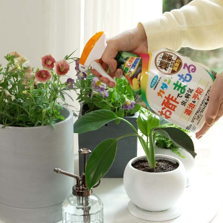 土に住みつくクロバネキノコバエにも効果を発揮します。鉢植え等の土全体に散布すれば、3日間効果が持続。3~4日に一回続けてまけば、成虫の寄りつきを防ぐと同時に成虫・幼虫の駆除もできるので、数を徐々に減らしていくことができます。