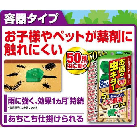 ●容器入りなので雨に強く、水に濡れても効果が約1ヵ月※持続します。
