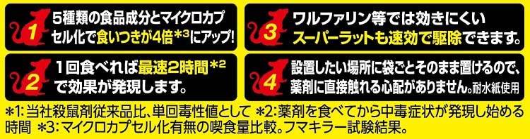 ワルファリン等が効きにくい「スーパーラット」にもよく効きます。