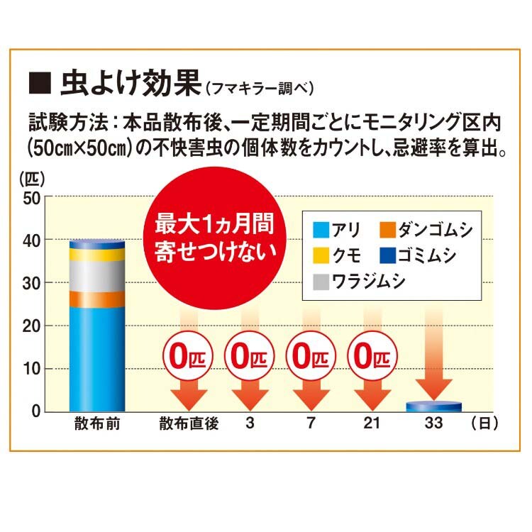 ※ユスリカ、アリ、ダンゴムシ、ワラジムシ、クモ、ムカデ。使用環境により異なります。