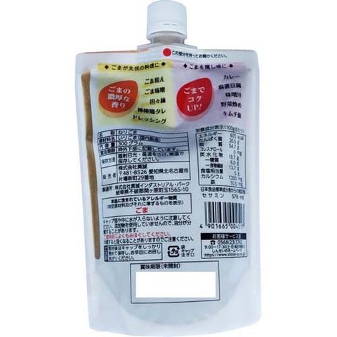 | 100g当たり エネルギー:605kcal、たんぱく質:20.5g、脂質:54.7g、コレステロール:0mg、炭水化物:18.7g(糖質:6.0g、食物繊維:12.7g)、食塩相当量:0g、カルシウム:1200mg、鉄:10.0mg、セサミン:578mg |