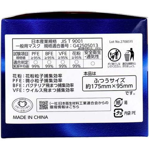 | 個装重量:約181g 内容量:50枚入 ★サイズ ふつうサイズ:約175mm×95mm ★素材 ・本体:ポリプロピレン ・耳部:ポリエステル ・ノーズフィッター:ポリエチレン |