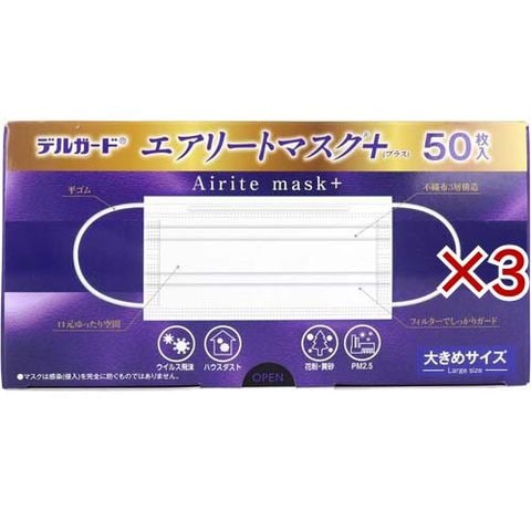 デルガード エアリートマスク+ 大きめサイズ (50枚入×3セット)
