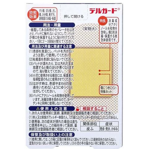 ●消毒成分アクリノール水和物を含有し、傷口を消毒・保護する救急絆創膏です。