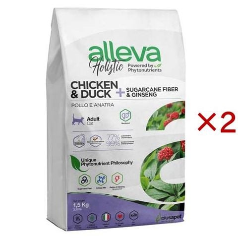 アレヴァホリスティック猫用ニュータードチキン&ダック+サトウキビ繊維&ジンセン (1.5kg×2セット)