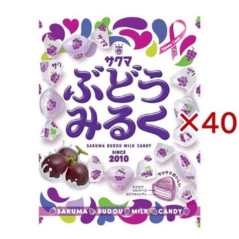 | 砂糖(国内製造)、水飴、全粉乳、植物油脂、ぶどう果汁、食塩/酸味料、香料、着色料(アントシアニン、クチナシ)乳化剤、(一部に乳成分・大豆を含む) |
