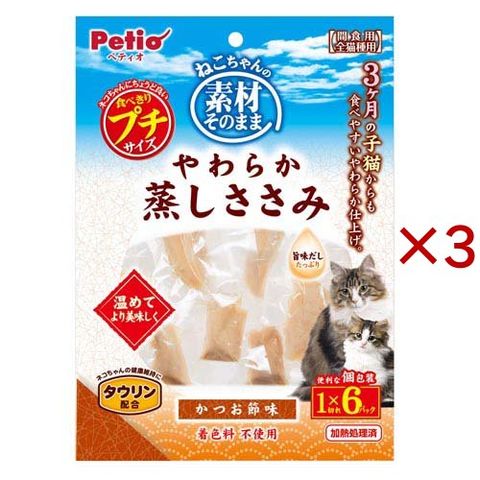 素材そのまま ねこちゃんのやわらか蒸しささみ プチ かつお節味 (6袋入×3セット)