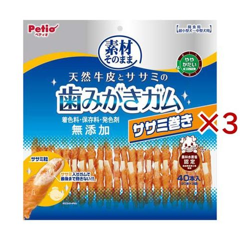素材そのまま 天然牛皮とササミの歯みがきガム ササミ巻き (40本入×3セット)