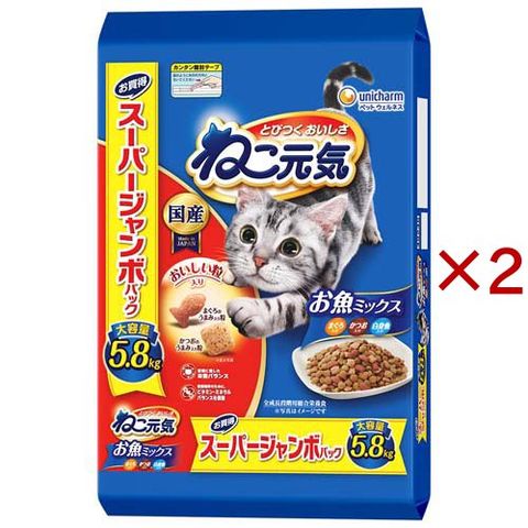 ねこ元気 お魚ミックス まぐろ・かつお・白身魚入り 猫ドライフード (5.8kg×2セット)