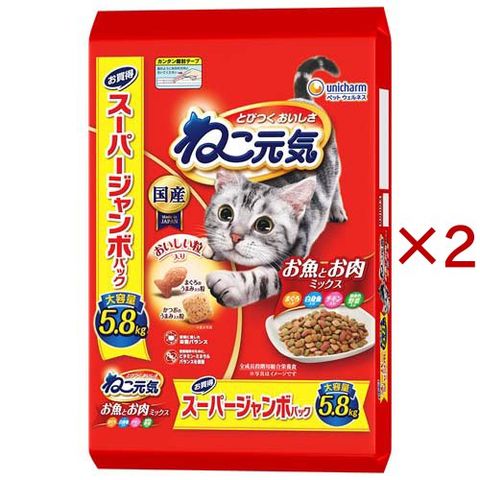 ねこ元気 お魚とお肉ミックス まぐろ・白身魚・チキン・緑黄色野菜入り (5.8kg×2セット)