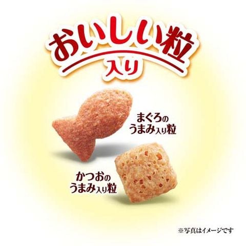 ●サクサクおいしい食感のかつおだし入り粒と、まぐろのうまみ入り粒が入ってとびつくおいしさ