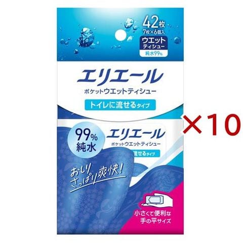 エリエール ポケットウエットティシュー トイレに流せるタイプ (6個入×10セット(1個7枚))