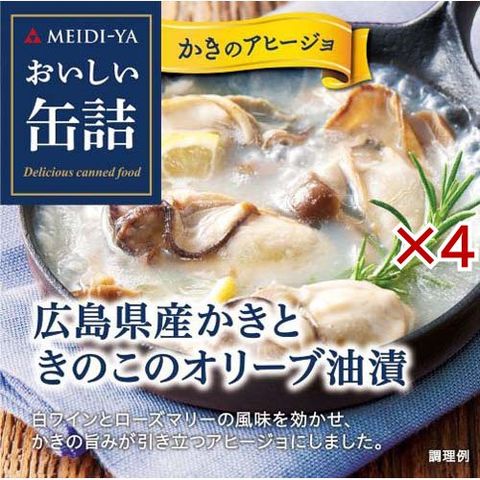 明治屋 おいしい缶詰 広島県産かきときのこのオリーブ油漬 白ワイン&ハーブ風味 (90g×4セット)