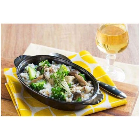 ●広島県産かきとしめじを、白ワインとローズマリーの風味を効かせ、かきの旨みが引き立つアヒージョにしました。