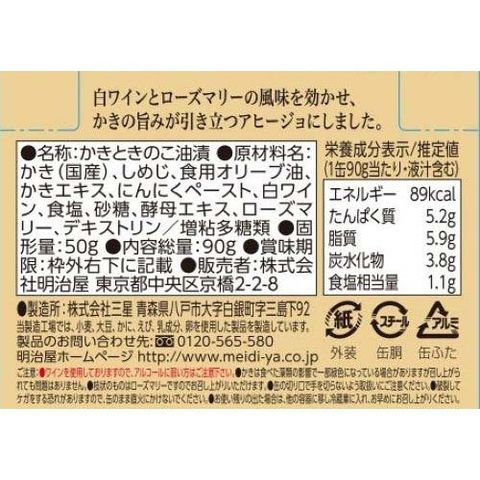 【明治屋 おいしい缶詰 広島県産かきときのこのオリーブ油漬 白ワイン&ハーブ風味の商品詳細】