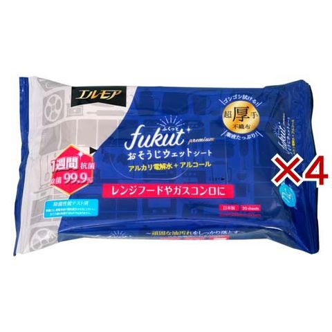 エルモア fukut premium おそうじシート アルカリ電解水+アルコール (20枚入×4セット)